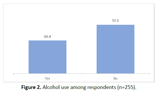 The study findings revealed a high prevalence rate of 40.4% of pregnant women consumed alcohol prior to pregnancy recognition and during pregnancy. shows that the prevalence of alcohol use among pregnant women during pregnancy was 40.4% (103) and 59.6% (152) of them did not consume alcohol. Shows the respondents knowledge on the harmful effects of alcohol to the unborn baby. A total of 175 (68.6%) had knowledge and 80 (31.4%) had no knowledge. The relationship between alcohol use and the above selected variables (marital status and smoking status) was found to be statistically significant (Figures 2-3).