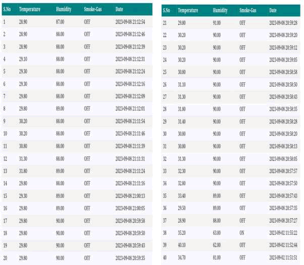 Figure 10. Observation values of temperature, humidity, smoke gas with date.