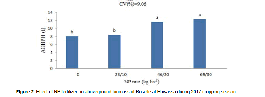 Okosun (2010) reported that dry calyx yield responded positively to nitrogen and phosphorus in combination. They reported that application of 60 kg ha-1 of N and 30 kg ha-1 of P gave a good result. They observed that as the nutrient rates increasing the dry calyx yield was also increased from 586.3 kg ha-1 to 668.67 kg ha-1 for N and from 484 kg ha-1 to 720.33 kg ha-1 for P fertilizers applied than control treatment (unfertilized plots). Giginyu and Fagbayide (2009) also reported that dry matter responded best to 30 kg N + 50 kg P/ha and lowest mean was obtained from 0 kg N/ha which was 1.02 t ha-1 and 0.36 t ha-1 respectively. The report from Mera et al. (2009) indicated that the main effects of N and farmyard manure showed a significant effect from the control or from unfertilized plots on dry calyx yield. According to this author, application of 2.5 t ha-1 of farmyard manure and 50 kg ha-1 of N gave 380.2 kg ha-1 and 433.9 kg ha-1 of dry calyx yield respectively. The authors recommended 2.5 t ha-1 farmyard manure and 50 kg N for production of the dry calyx.