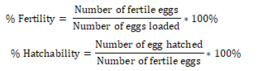 The percentage fertility and hatchability were obtained from the equations below respectively.