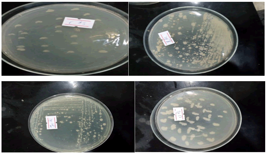 Screening for pH tolerance: The pH stress tolerance of all the isolates were tested on solid media plate with pH (5.0, 6.0, 7.0, 8, and 9) by inoculating from log phase culture and incubating at 28°C for 48-72 hours.